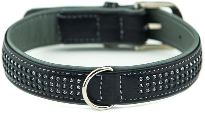Шкіряний нашийник зі стразами для собак Pacific Deluxe Collar Nobby L-XL: 28-32 мм, Д 60 см, ОШ 50-58 см Сірий