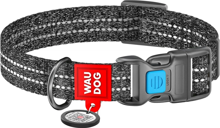 Нашийник для собак із відновленої бавовни WAUDOG Re-cotton з QR паспортом світловідбиваючий пластиковий фастекс Ш 25 мм Дов