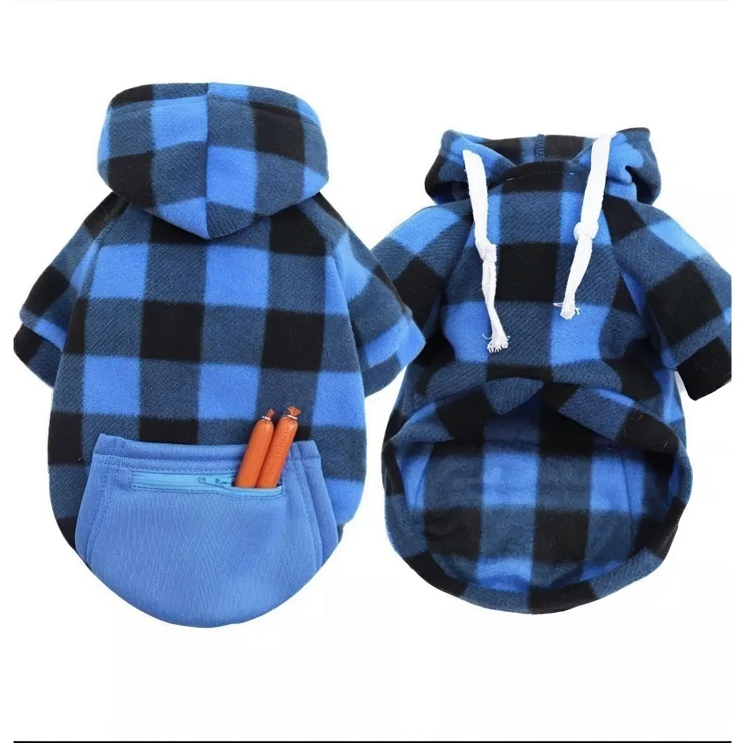 Худі Ginger для тварин L Клітинка з кишенею синє