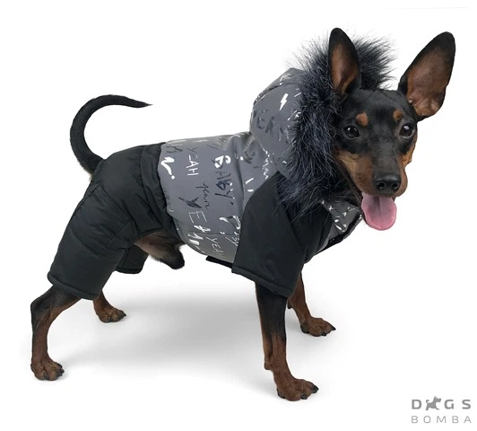 Зимовий комбінезон із світловідбиваючої тканини із сріблястим принтом для собак Dogs Bomba чорний із сірим, розмір 8