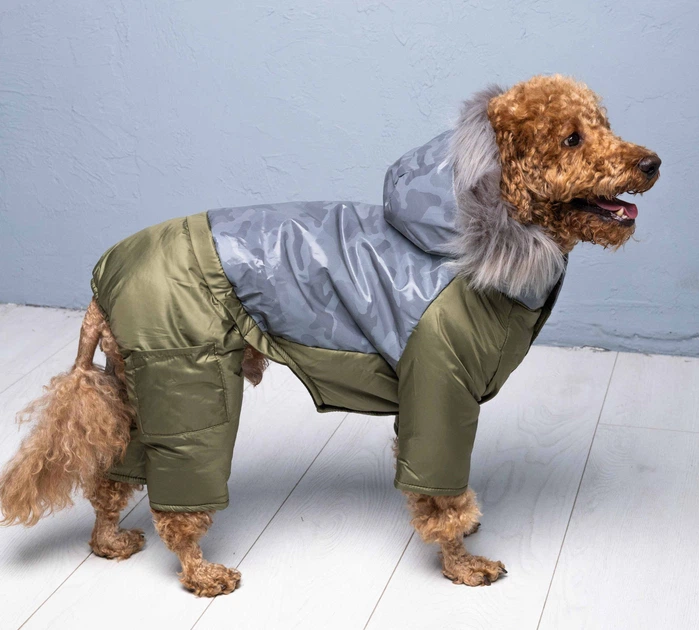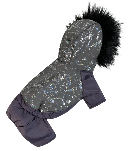Зимовий комбінезон із світловідбиваючої тканини із сріблястим принтом для собак Dogs Bomba чорний із сірим, розмір 8