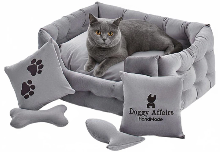 Лежанка для кота лежак для котів Doggy Affairs ліжко для кота ручної роботи спальне місце для улюбленця М 73х53 см сірий (бе
