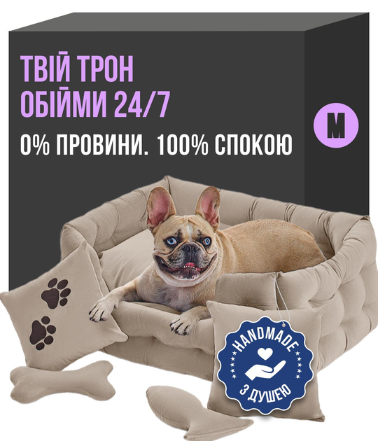Лежак для собак лежанка для собаки Doggy Affairs ліжко ручної роботи спальне місце М 73х53 см бежевий (без подушок)