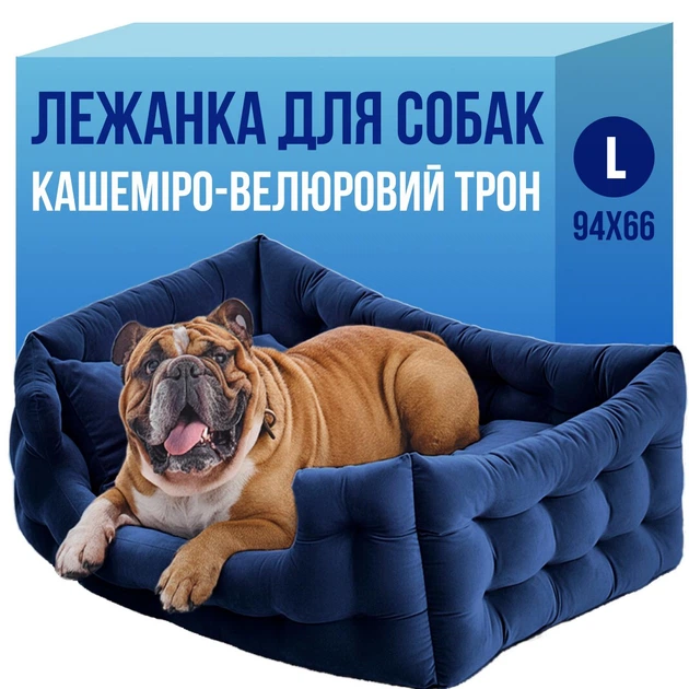 Лежак для собак лежанка для собаки Doggy Affairs ліжко ручної роботи спальне місце L 94х66 см синій + іграшки в комплекті