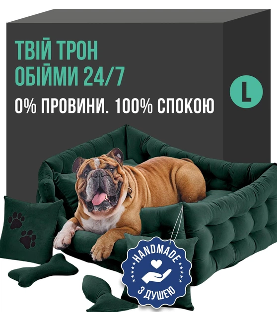 Лежак для собак лежанка для собаки Doggy Affairs ліжко ручної роботи спальне місце L 94х66 см зелений (без подушок)