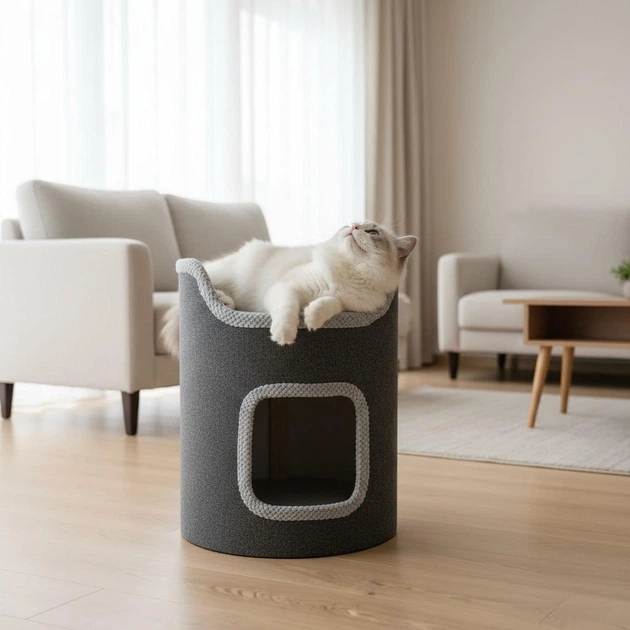 Пуф будиночок із затишною лежанкою для кішки кошенят 53х40см сірий