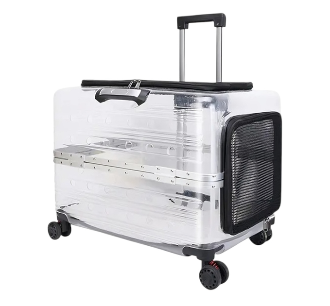 Валіза переноска прозора на колесах з телескопічною ручкою для тварин кішок собак 445539 см (481208-Prob) Чорний