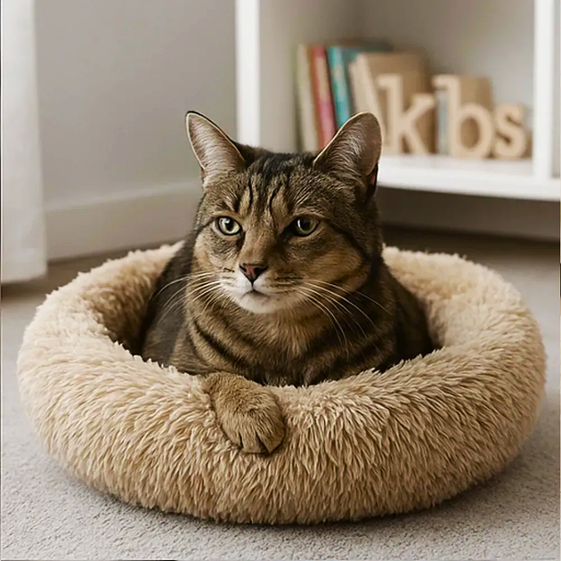 Лежанка для собак та котів, 70см бежева / М'який лежак для тварин (L)