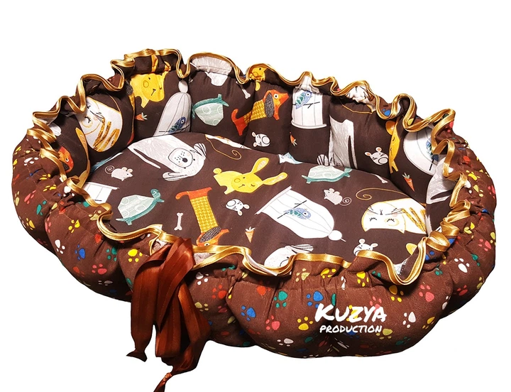 Двостороння овальна лежанка трансформер "улюбленці на коричневому" для собак і котів Kuzya Production (00020888)