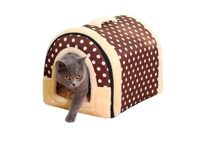 Будиночок-лежак для котів та собак 2в1 розмір L 55х47х42 см бежево-коричнеий