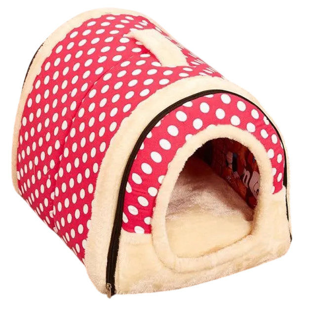 Будиночок-лежак для котів та собак розмір L 55х47х42 см червоний з принтом у горошок