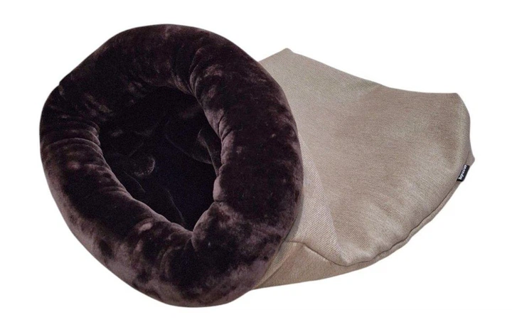 Лежак лежанка ліжко норка кишеня хутряний мішок для котів та собак Пісочним з Коричневим хутром 80 х 70 см