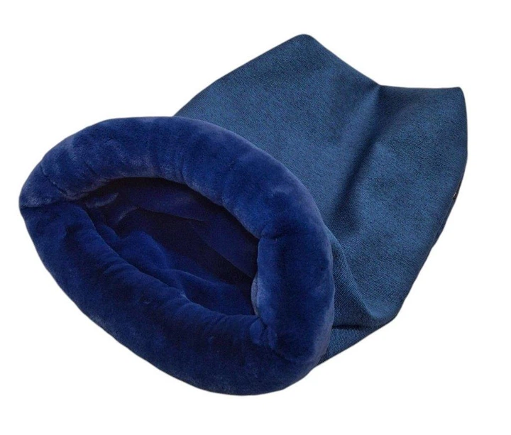 Лежак лежанка ліжко норка кишеня хутряний мішок для котів та собак Синій з Синім хутром 80 х 70 см