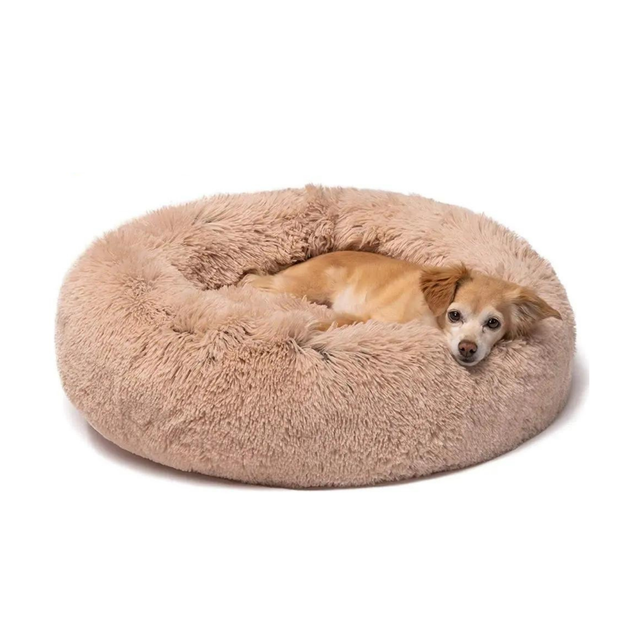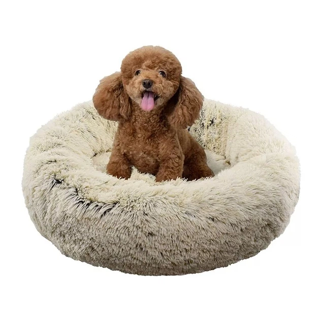 Лежанка Для Котів та Собак 60 см М'яка Пуфик Подушка Кругла Глибока Для Домашніх Животних Бежева
