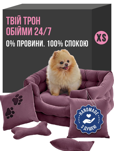 Лежак для собак лежанка для собаки Doggy Affairs ліжко ручної роботи спальне місце для улюбленця ХS 53х43 см фіолетовий