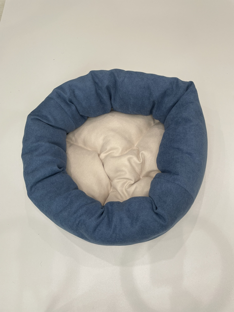 Лежак для котів та собак SKYPUFF 80 см Denim + Ecru