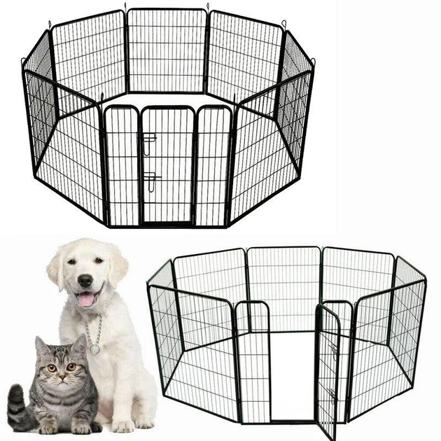 Манеж металевий вольєр MALATEC для собак розбірний 8 секцій 60х80 см з дверцятами