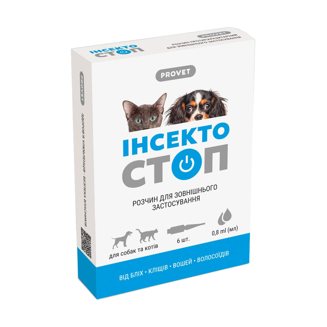 Краплі для собак та котів ProVET Інсектостоп від бліх та кліщів, 6*0.8 мл