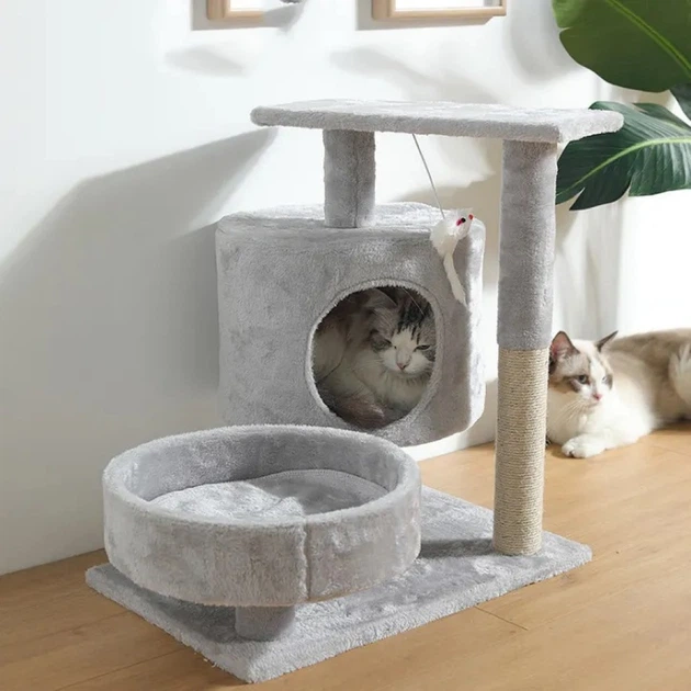 Кігтеточка-будиночок дерев'яний 61 см Bonro B-29 для кішок сіра