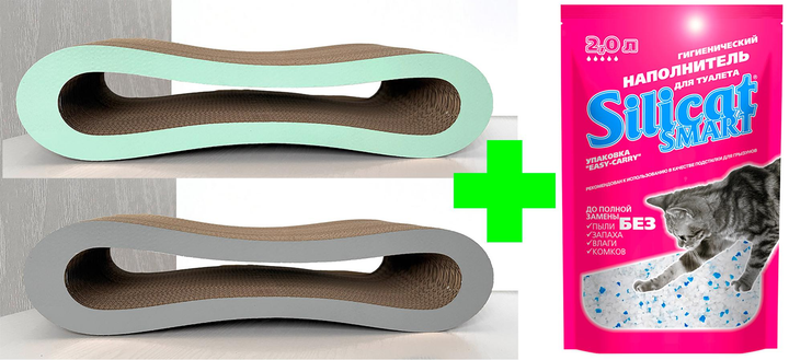 Кігтеточка для кішок картонна RASPER M сіра+Кігтеточка для кішок картонна RASPER M зелена+подарок Наповнювач для котячого ту