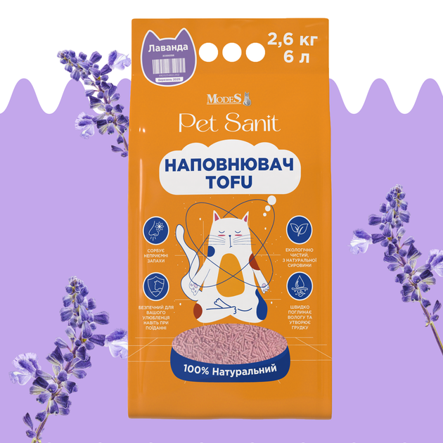 Наповнювач Tofu - лаванда 2,6 кг, 6 л, ПетСаніт (PetSanit), MODES