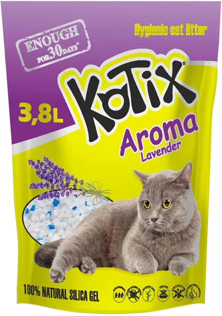 Наповнювач для котячого туалету Kotix Aroma Lavender силікагелевий вбирний 3.8 л (1.8 кг)