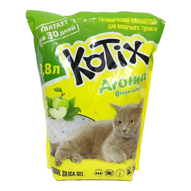 Силікагелевий наповнювач для котячого туалету Kotix 3,8л аромат яблуко