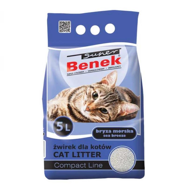 Super Benek Compact Sea Breeze - бентонітовий наповнювач для котячих туалетів (аромат морського бризу) - 5 л (дрібний)