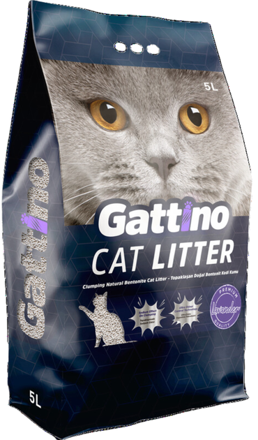 Наповнювач для котячого туалету GATTINO грудкуючий бентонітовий Лаванда 5 л/4.5 кг (8682923503862)