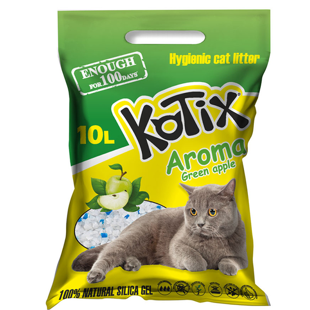 Силікагелевий наповнювач Kotix для котячого туалету з ароматом яблука 10 л