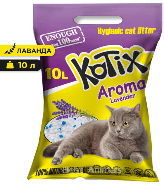 Силікагелевий наповнювач Kotix Aroma Lavender Котікс з ароматом лаванди 10 л (4,1 кг) (4820266661304)