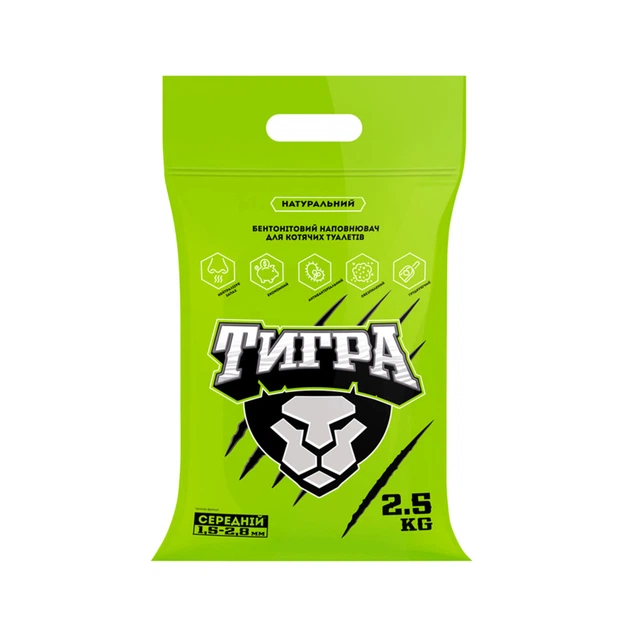 Бентонітовий наповнювач Тигра, 2,5 кг, розмір гранули середній (1,5 - 2,5 мм)