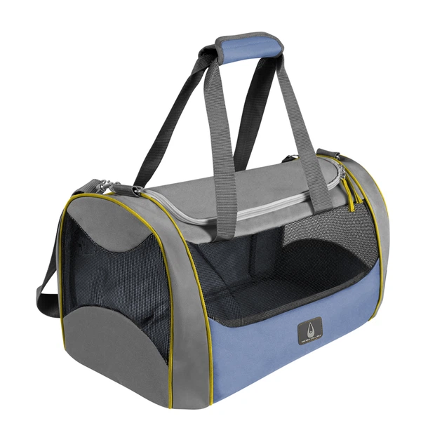 Сумка-переноска для котів і собак COLLAR нейлонова, сірий-блакитний, вентиляційні сітки, жорстке дно, довгий плечовий ремінь