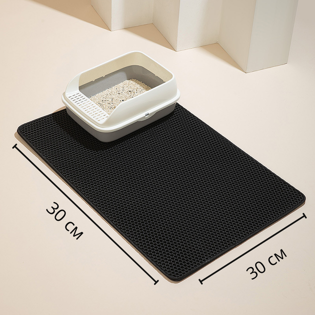 Килимок під котячий туалет двошаровий водонепроникний для збору котячого наповнювача 30x30 см чорний (002330)