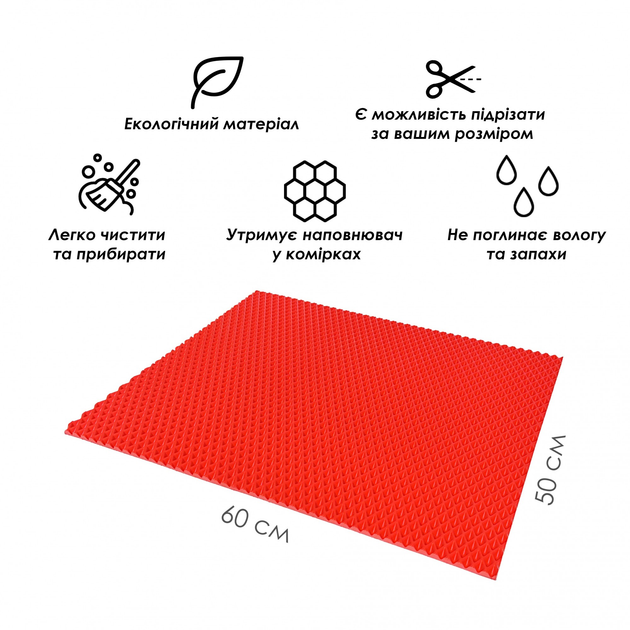 Килимок для котячого туалету, під лоток EVAPUZZLE UltraMat 60х50 см червоний