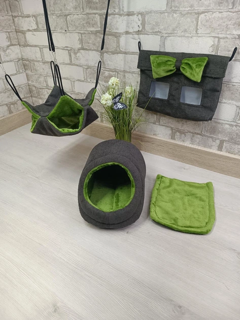 Комплект для гризунів, будиночок, гамак, сінник для морських свинок, шиншил Animalsjoy (013)