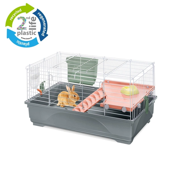 Клітка із вторинного пластику для кролика з мискою, годівницею та напувалкою Imac Ronny 80 2nd Life Plastic Сірий 80,5 х 48,