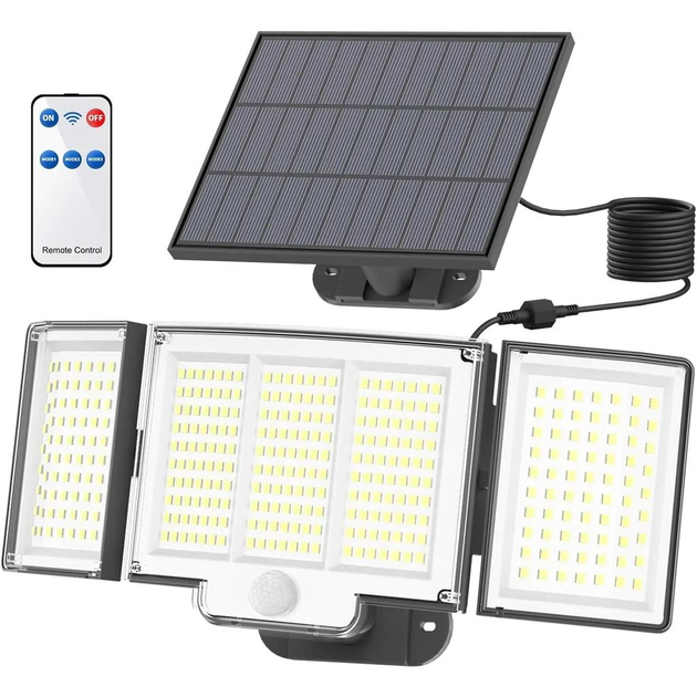 Вуличний сонячний LED-прожектор 348 діодів з датчиком руху, водонепроникний IP65, 3 режими освітлення