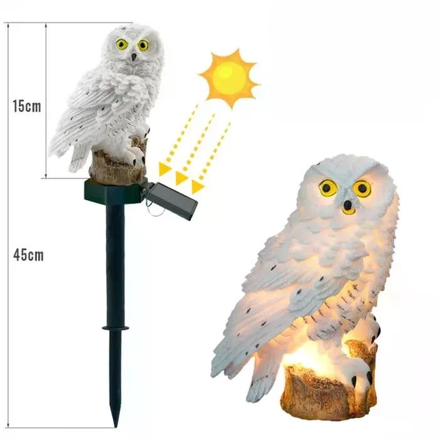 Садовий сонячний ліхтар “Сова” білий, декоративний світильник