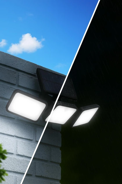 Вуличний сонячний LED світильник з датчиком руху 180 LED 3 лампи автономна робота до 10 годин
