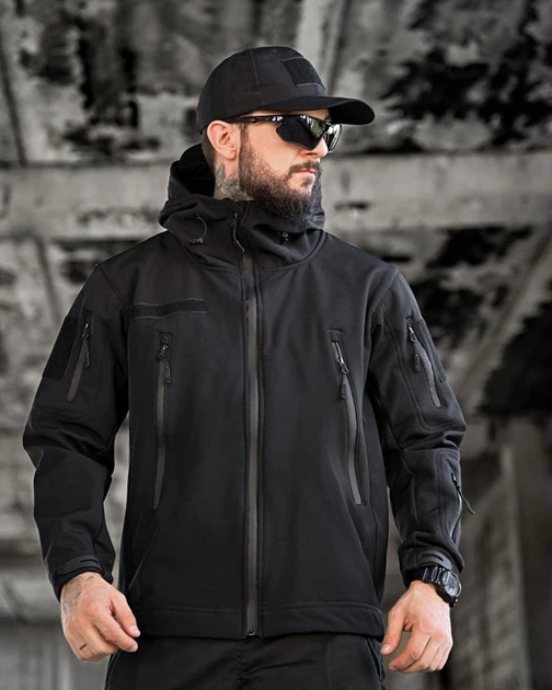 Чоловіча Куртка з капюшоном Softshell на флісі чорна розмір XS