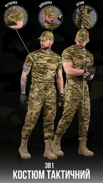 Тактичний літній костюм 3 в 1 Штани, футболки, бейсболка, повномірні Combat Tactical Піксель M