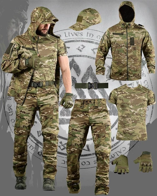 Тактичний костюм 4в1 штани+убакс+куртка+кепка M мультикам (85804)