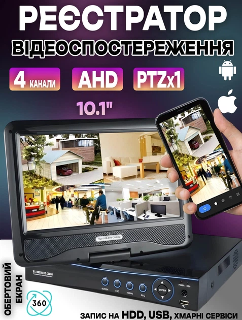 Реєстратор для відеоспостереження з дисплеєм 10.1" Digital AHD DVR 4-канальний цифровий