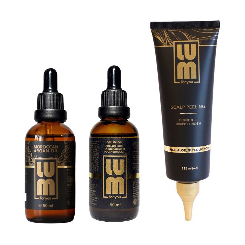 Набір для волосся LUM Формула: чисте коріння 72 години + активний ріст (лосьйон, 50 мл + арганова олія, 50 мл + пілінг для ш