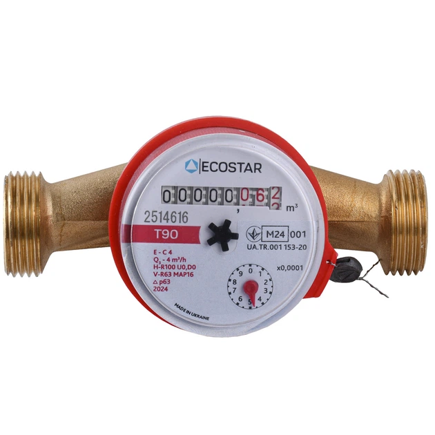 Лічильник гарячої води ECOSTAR E-C 4,0, механічний, крильчатий одноструйний, резьбове підключення DN20, для комунально-побут