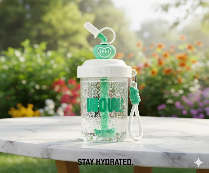 Шейкер 580 мл з віночком та трубочкою для фітнесу та коктейлів салатовий