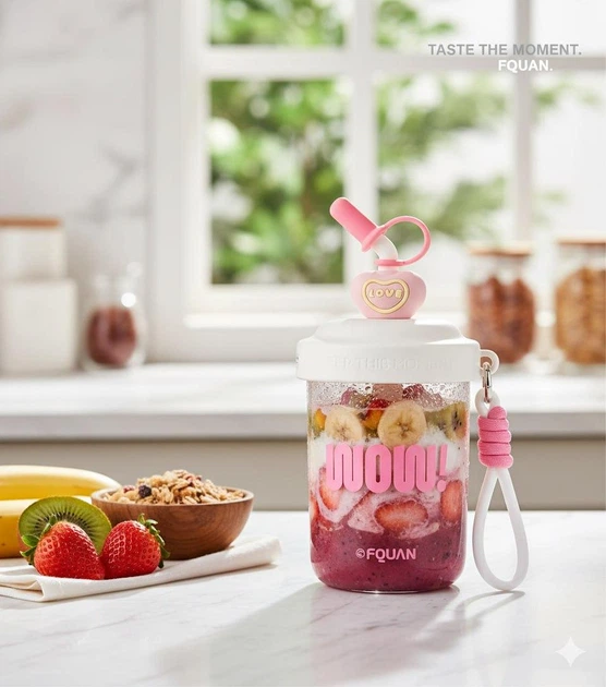 Шейкер 580 мл з віночком та трубочкою для фітнесу та коктейлів білий