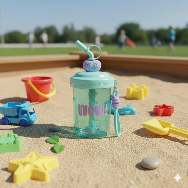 Шейкер 580 мл з віночком та трубочкою для фітнесу та коктейлів зелений