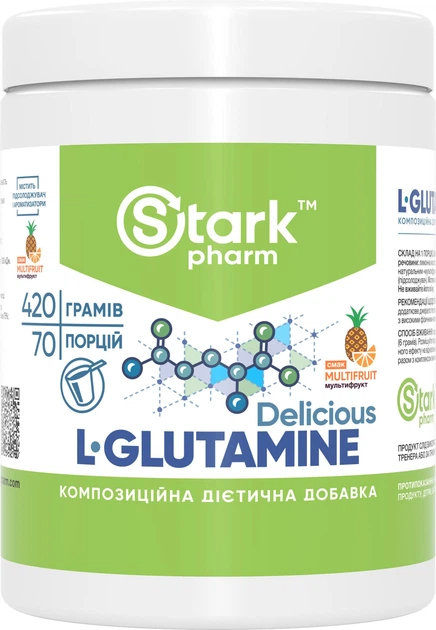 Глютамін Stark Pharm Glutamine Delicious Powder, L-глютамін у порошку 420 грамів мультифрукт (19494)